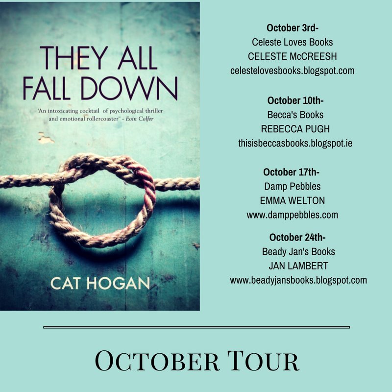 A very warm welcome to my stop on the October They All Fall Down blog tour. They All Fall Down is Cat Hogan’s debut novel, and what a brilliant start! I’m looking forward to seeing what Cat has in store for us next.