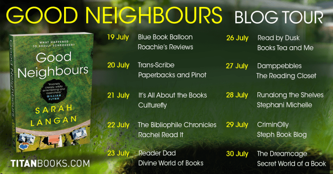 I chose to read and review a free ARC of Good Neighbours but that has in no way influenced my review. My grateful thanks to Sarah at Titan Books for sending me an early copy and inviting me to join the tour.