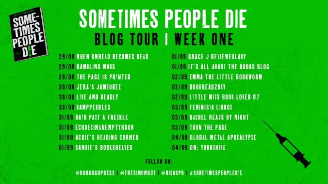 Hello and welcome to damppebbles. Today I am delighted to be joining the Sometimes People Die blog tour. Sometimes People Die by Simon Stephenson is published later this week (that’s Thursday 1st September 2022) by The Borough Press and will be available in hardcover, paperback, audio and digital formats. Today I am thrilled to join the tour with a spotlight post, so without further ado let’s find out what the book is all about…